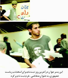 عرصه اى كه در آن حرفى براى گفتن داشته باشيد ما همان قدر كه از حضور شما همسن و سالان خود در جامعه خوشحال مى شويم، از مسخره شدن و كوته بين ناميدن شما آزرده خاطر خواهيم شد بله، با تو هستم مصطفى پيمان ۱۶ ساله از اصفهان از تو مى پرسم كه در پاسخ به مسؤولان وزارت كشور كه از تو پرسيدند تو حتى نمى توانى از لحاظ قانونى، يك چك امضا كنى چگونه آمده اى ثبت نام كنى، چه پاسخى دادى؟ سجاد درويشى ۱۷ ساله پشت كنكورى از تهران كه گفته اى خواب ديدى با جرج بوش رئيس جمهور آمريكا در كاخ سفيد ديدار كرده اى، خواب ديدن تنها استدلال تو براى ثبت نام است؟ به نظر خودت كافيست؟ يا على تركشونه ۲۲ ساله، دوست عزيز كرمانشاهى كه انگيزه زيباى رشد و گسترش جامعه و توسعه و پيشرفت آن را دليل ثبت نامت عنوان كردى ،آيا دانش و راهكارهاى اين انگيزه را هم در توشه دارى؟ خبرها به همين جا ختم نمى شود دختر ۱۸ ساله اى كه به همراه برادرش براى ثبت نام به وزارت كشور رفته شايد تنها نمى توانسته از خانه خارج شود. دختر ۱۸ ساله ديگرى كه در مقابل سؤال مسؤولان وزارت كشور مبنى بر اينكه برنامه اجرايى ات چيست؟ گفته فعلاً تا كنكورم را ندهم برنامه اى ندارم. خواننده جوانى كه دليل ثبت نام اش را بيان كردن حرفهايش عنوان كرد و خوانندگى را از كار رياست جمهورى سخت تر دانسته، دوست ديگرى كه به خاطر ثبت در دفتر خاطراتش كانديداى رياست جمهورى شده، كشاورزى كه براى بهتر كردن شرايط زايمان كانديدا شده تا با افزايش جمعيت، كشورى قوى بسازد (قابل توجه دوستان عزيز در سازمان تنظيم خانواده و وزارت بهداشت) و يا قاليبافى كه فرق خود را با سردار قاليباف در شغل قالى بافى خود مى داند و مى گويد: «اگر آقاى كروبى ۵۰ هزار تومان به هر ايرانى مى دهد، من ۵۲ هزار تومان خواهم داد.»